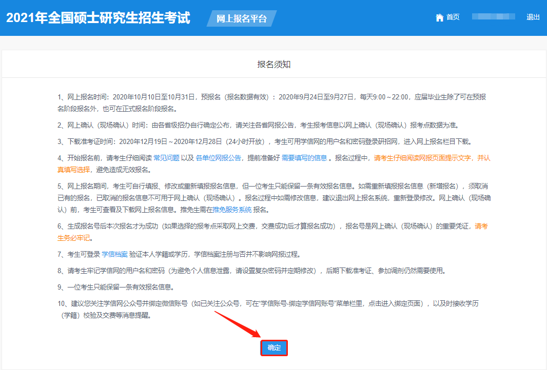 2.所有考生均应当对本人网上报名信息进行认真核对并确认。报名信息经考生确认后一律不作修改,因考生填写信息错误引起的一切后果由本人自行承担。