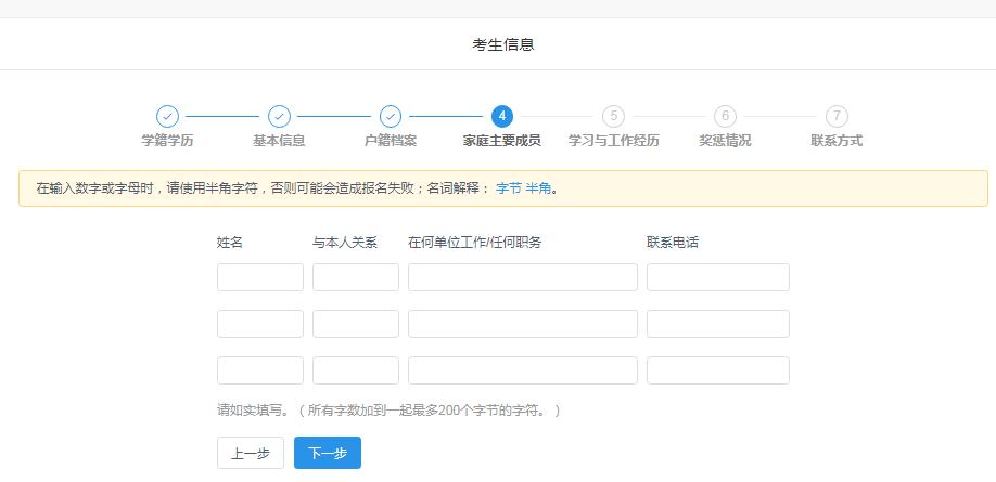 (9)如实填写家庭主要成员、学习与工作经历