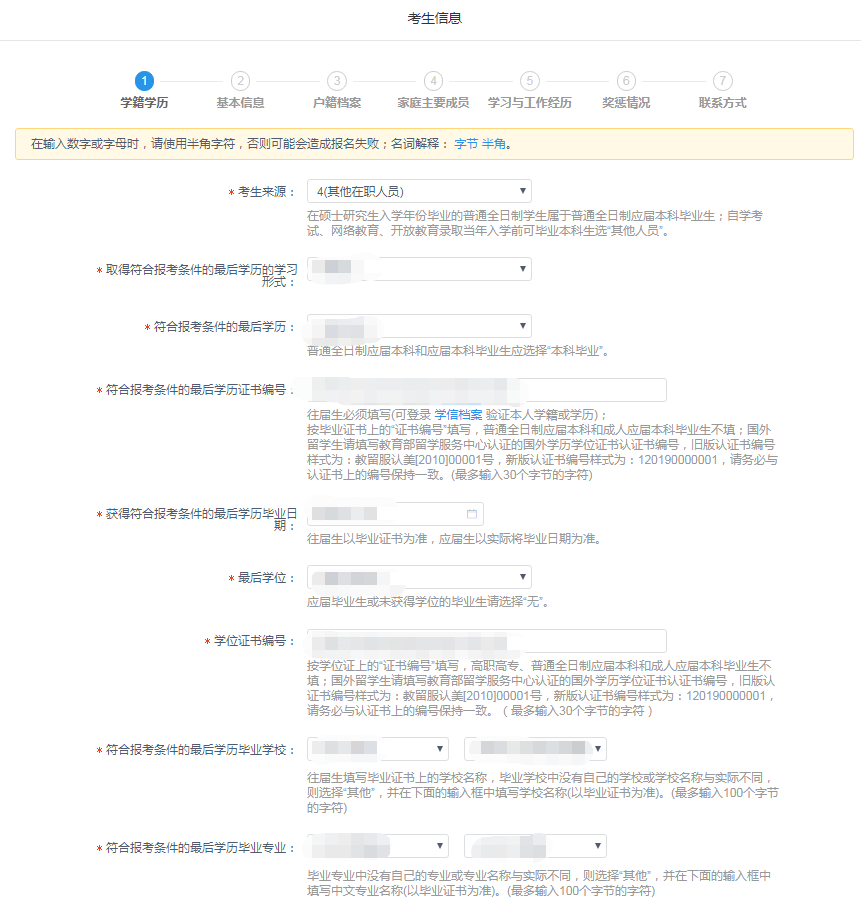(6)如实填写学籍信息