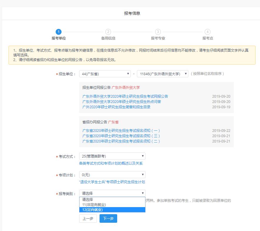 报考类别:全日制可填非定向就业或定向就业(如填写定向就业,将不能参评国家助学金等资助),非全日制统一填定向就业(无需单位提供证明)