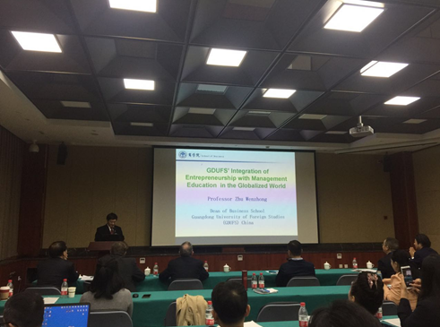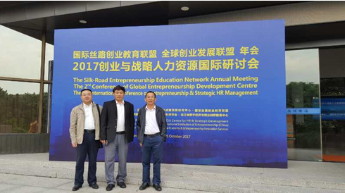 10月23日-25日, 2017创业与战略人力资源国际研讨会暨第二届全球创业发展联盟年会在浙江大学召开,院长朱文忠教授、副院长袁登华教授和人力资源管理系主任安凡所教授应邀出席。朱文忠院长在研讨会上作了《GDUFS's Integration of Entrepreneurship with Management Education in the Globalized World》的主题演讲。