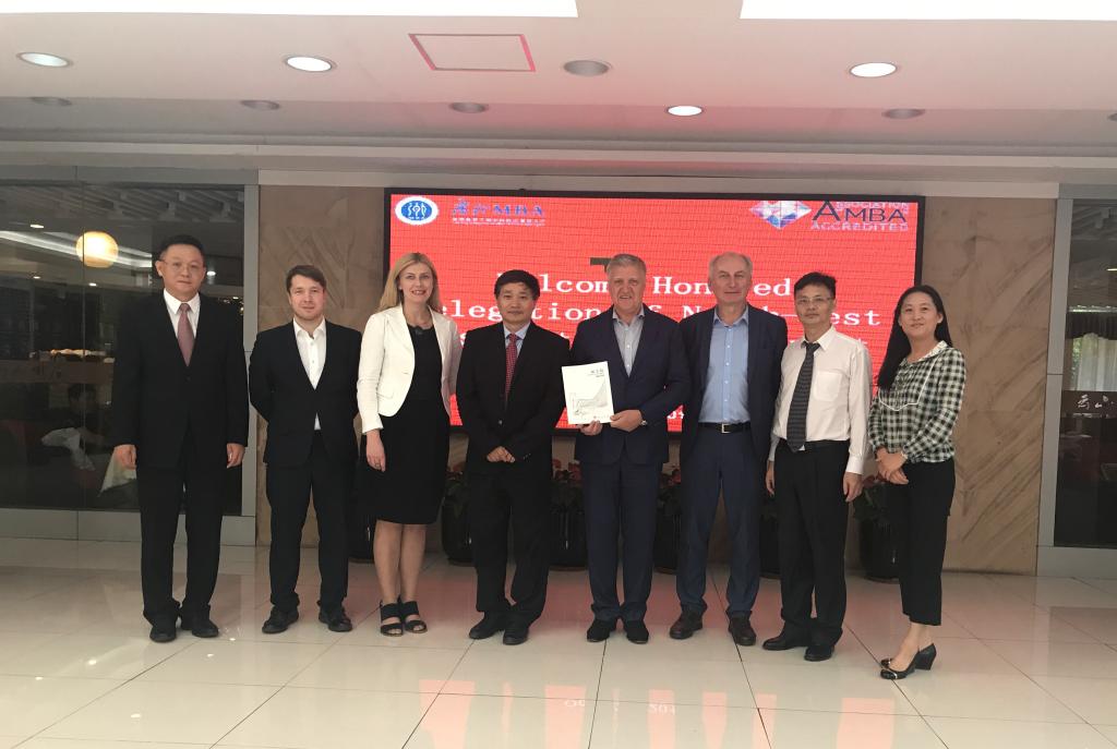 10月30日下午,俄罗斯西北管理学院院长Vladimir Shamakhov和西北管理学院国际合作处处长Natalia Muyzinik等一行四人来访广东外语外贸大学商学院。我院院长朱文忠、副院长梁洁、邱伟年在MBA中心308贵宾室接待了来访一行。