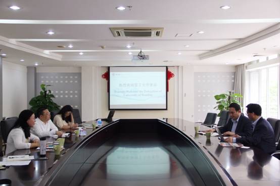2019329日,英国雷丁大学亨利商学院副院长唐银山和雷丁大学国际教育与语言学院中国项目主任、南信大-雷丁学院英方院长李大国一行来访商学院MBA教育中心。商学院副院长袁登华、副院长徐艺青、商学院办公室廖晓君,MBA中心于倩倩在MBA教育中心402会议室接待了来访一行。