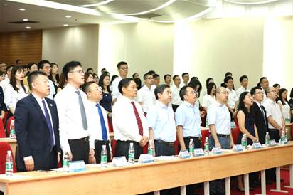 最后,全体同学佩戴校徽,正式成为广外的一员,开学典礼在庄严的校歌中圆满结束。
