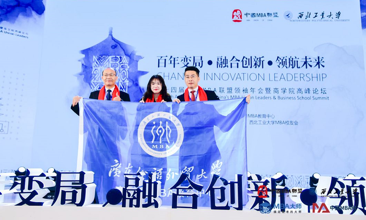 12月12日,由中国MBA联盟和西北工业大学共同主办的第十四届中国MBA联盟领袖年会暨商学院高峰论坛在古城西安隆重举行。广东外语外贸大学商学院MBA教育中心主任助理袁樱、MBA联合会主席杨慧、副主席杨凯川一行出席了本届年会。