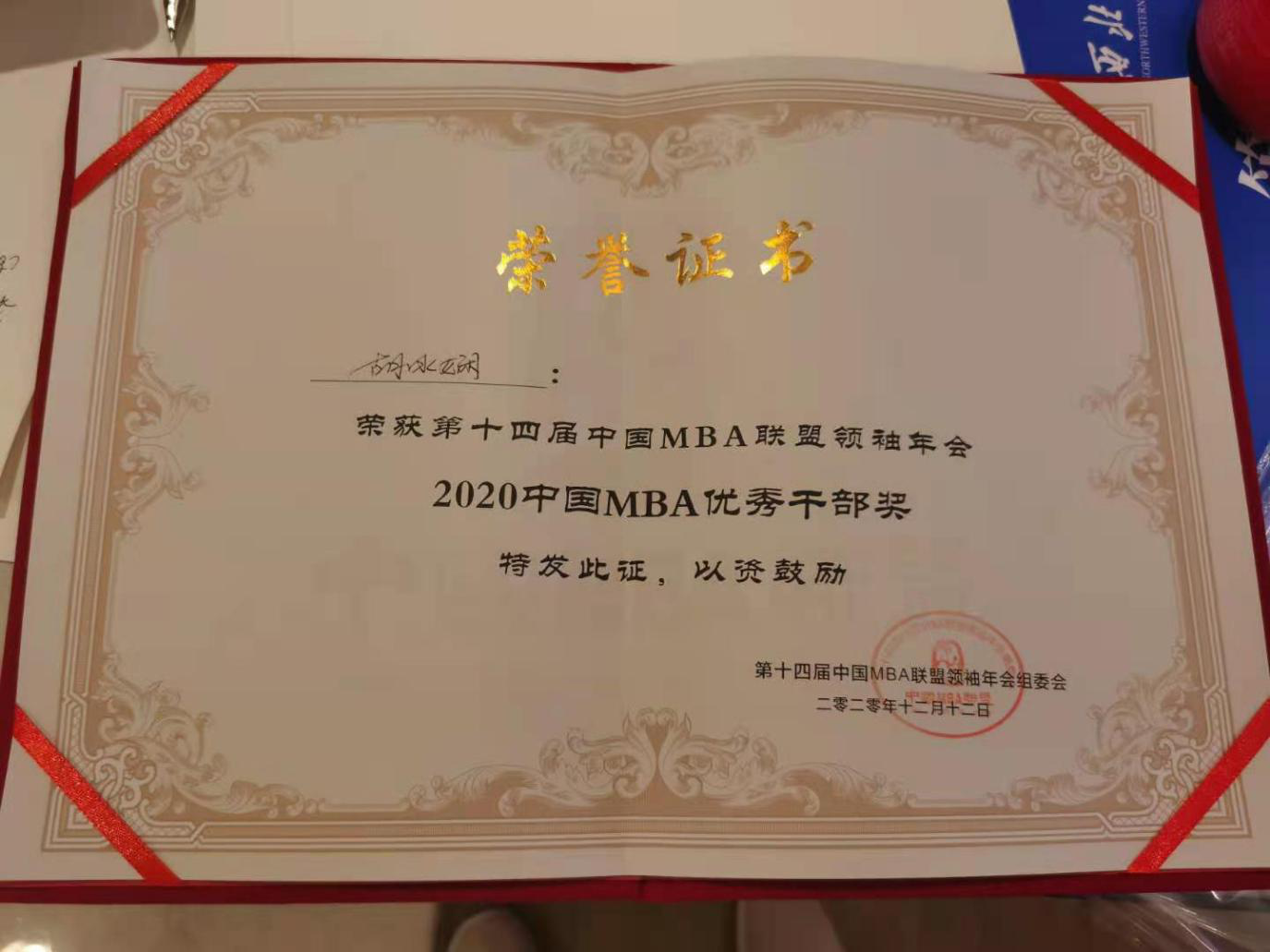其中,2020级新生杨慧、杨凯川荣获第十四届中国MBA联盟领袖年会“2020中国MBA新锐100奖”,2019级胡冰娴同学荣获“2020中国MBA优秀干部”荣誉称号。