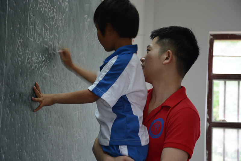随后,广外MBA关爱小组成员来到自2013年6月1日起建立的精准帮扶微笑家园杜坑小学,捐赠物资后,进入教室与等待已久的孩子们学习、玩耍。关爱小组成员寓教于乐,与孩子们玩益智游戏,辅导孩子们的功课作业,并鼓励孩子们勤学苦练、发愤图强,未来以知识改变命运,成就人生。杜坑小学的孩子们对广外MBA的师生们十分熟悉,热情而愉快地与关爱小组成员嬉戏玩乐,露出天真无邪的笑容,一串串铜铃般的笑声从杜坑小学里传出。分别时刻,孩子们依依不舍地目送关爱小组成员们离开,并送上饱含朴质情感的当地特产李子、番薯叶等,礼轻情意浓,心中无限感慨,或许这次我们收获的要比给予这些孩子的更多。