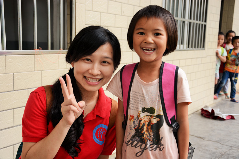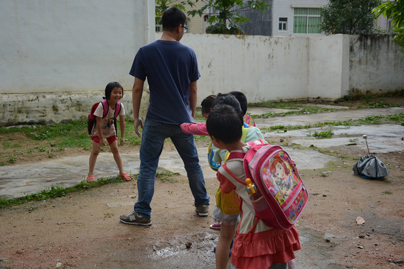 这一天的天气不如人愿,灰蒙蒙的天空一直暴雨不断,但是大家都早早的出现在集合地点。路途遥远,天气恶劣,早起的同学们都在车上睡着了,可当到达了杜坑,看到孩子们满心欢喜出门迎接我们,大家的疲惫一下烟消云散。