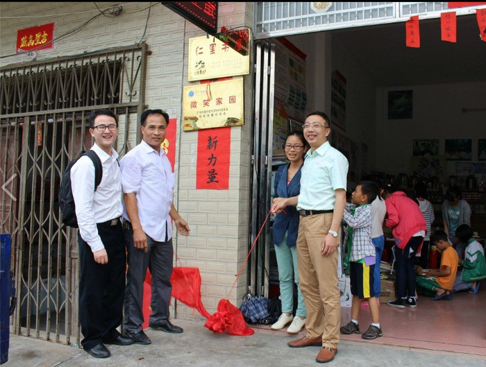 在封开县仁里当地学生们的见证下,MBA学院校友会会长钟杰军和仁里书屋创办人温淑媚一起为 “微笑家园”举行了揭牌仪式。钟杰军表示,“微笑家园”落户书屋后,校友会将保持与书屋的对接,汇聚校友的力量,并争取MBA学院的支持,以仁里书屋为支点,对杏花镇乃至封开县举行形式多样的志愿服务活动。