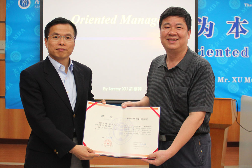 5月26日下午,MBA讲堂第53讲“企业以谁为本”在北校区第九教学楼举行,主讲嘉宾是中国港中旅集团副总经理许慕韩。副校长陈德萍和国际合作与交流处处长焦方太出席了此次讲座。MBA学院院长孙晓琴担任主持。讲座开始前,陈德萍为许慕韩颁发了客座教授聘书。