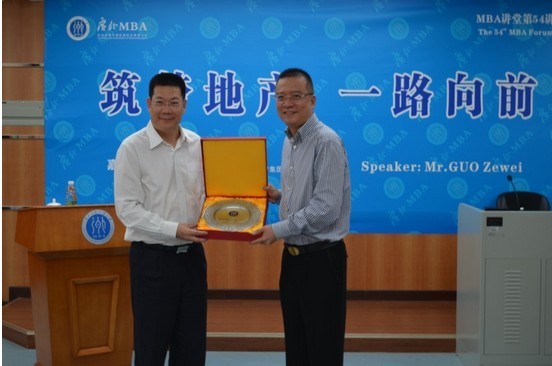 “筑梦地产,一路向前”,6月30日下午,我校MBA学院主办的MBA大讲堂第54讲在北校区第九教学楼103丝纺讲堂举行。主讲嘉宾为广州尚东地产集团有限公司董事长郭泽伟。