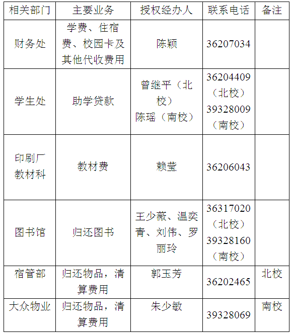 (三)组织部、保卫处、教务处等部门涉及毕业生离校的其他业务,按相关通知办理。