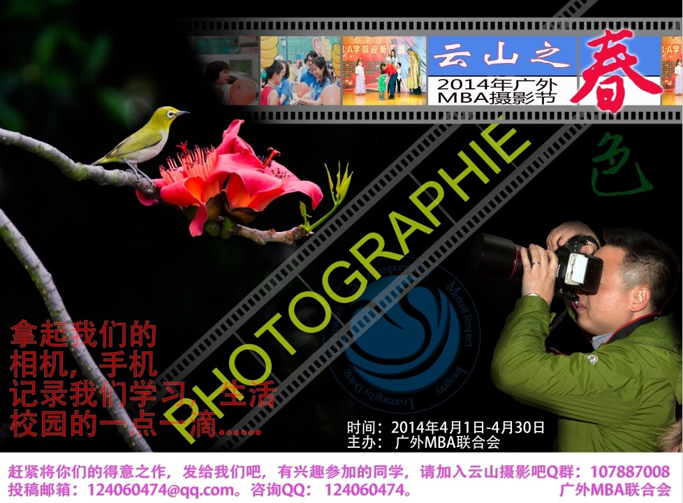 为丰富同学们校园文化生活,提高广大师生的审美情趣和艺术素养,为学院摄影爱好者搭建展现才华、交流创意的平台,展示我校校园风光与师生学习生活魅力瞬间,经研究,决定举办广外MBA学院首届校园摄影大赛暨优秀图片展活动。现将有关事项通知如下: