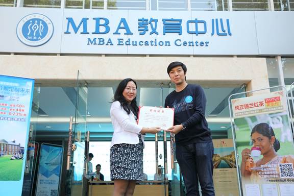 随后,魏传文为给本次活动提供大力支持的突出企业颁发企业突出贡献奖奖牌,分别有广发银行股份有限公司广州分行信用卡中心,中国建设银行广州白云支行,英伯伦锡兰红茶,华帝股份有限公司。徐艺青为给本次活动提供赞助支持的MBA校友19D班连丁同学,19C符宗卓同学、19E班黄利波同学以及12C班唐伟同学颁发荣誉证书。