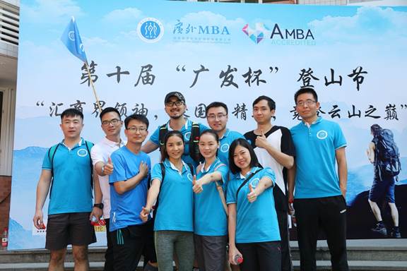 2019年11月17日,广东外语外贸大学商学院MBA第十届“广发杯”登山节活动在北校区MBA中心大楼前拉开帷幕。本次登山节活动的主题为:“汇商界领袖,聚国际精英,竞登云山之巅”。出席此次活动的领导和嘉宾有商学院党委书记魏传文老师、商学院副院长徐艺青老师、商学院MBA教育中心主任王刚副教授、商学院教师付秋芳教授以及MBA教育中心全体老师。此外,广外MBA师生及校友、MBA华南联盟成员、华南地区各兄弟院校MBA同学以及企业代表组成的参赛队伍和漫步云山队伍共计200余人共同参与了本次活动。